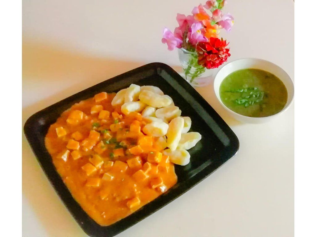 3. ČOČKOVÁ POLÉVKA S UZENÝM TOFU, VEGAN GNOCCHI ALLA FUNGHI, ROSTL. PARMEZÁN, ROSTLINNÝ DEZERT S KALÍŠKEM VEGANSKÉ KRUPIČNÉ KAŠE SE SKOŘICÍ (SAHLEP) (1,6)