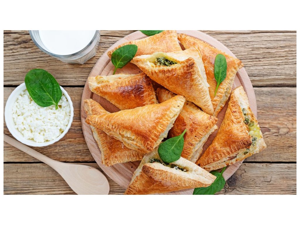 6. MINESTRONE S TĚSTOVINAMI A BAZALKOVÝM PESTEM, TAŠTIČKY PLNĚNÉ ŠPENÁTEM S ROSTL. SÝROVOU OMÁČKOU, ŽAMPIONY, SUŠ. RAJČATY A VEG. PARMEZÁNEM, ROSTL. CHLEBÍČEK S PEČENOU HRUŠKOU A PRAVÝM ČAJEM ZELENÝ SNÍH (1,6,8,9)