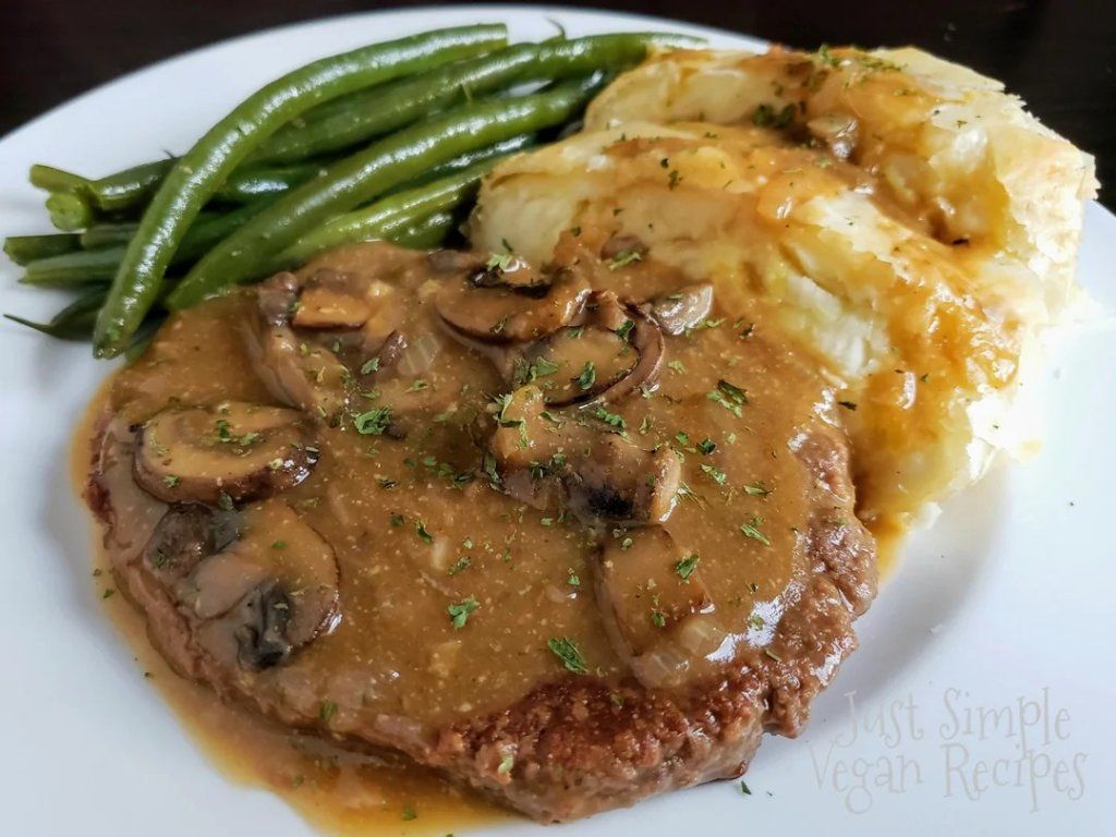 1. CUKETOVO-BAZALKOVÁ POLÉVKA S BÍLÝM TOFU, VEGANSKÉ STEAKY SALISBURY S CIBULKOVO-HOUBOVOU OMÁČKOU A BRAMBOROVÝM PYRÉ, VEGAN KULIČKY Z KOKOSU, BANÁNU A KAKAA S KALÍŠKEM ČAJE MATCHA (1,6,12)