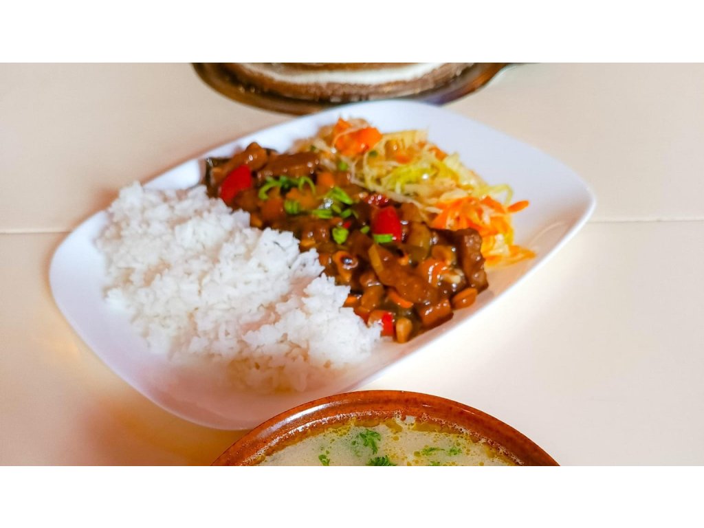 - Pokrm je vědomě s dobrým přáním a v klidu vytvářen v domácí čisté kuchyni, kde se nepřipravují žádná masitá jídla. Je citlivě chuťově vyvážený v kombinaci s polévkou, dezertem a čajem.