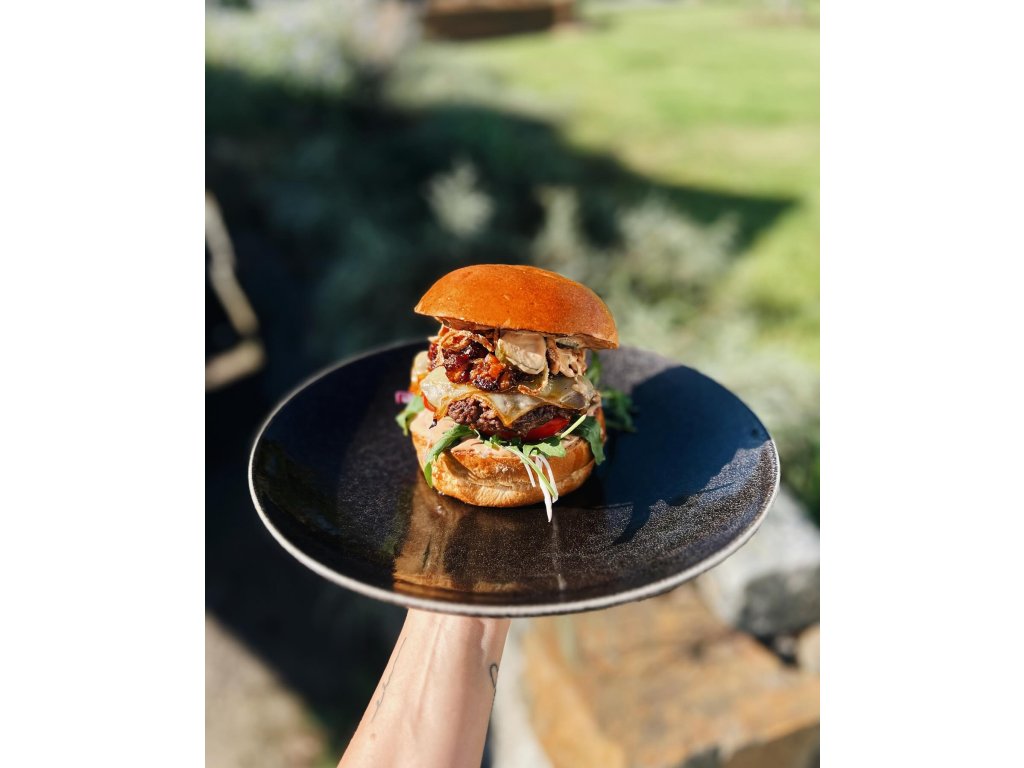 - Domácí veganský burger je vyvážený a rostlinné karbanátky si ručně sami vyrábíme.