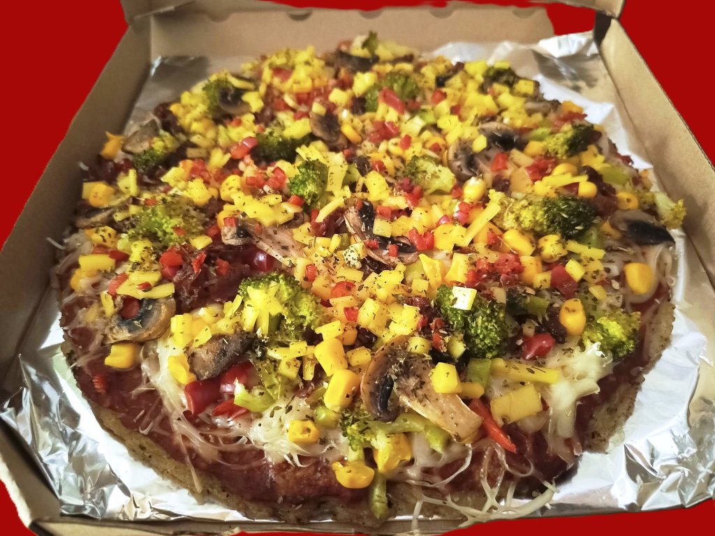 Jedinečná a unikátní receptura, velmi chutná vegan pizza BEZ MOUKY A ALERGENŮ. Rýže, více druhů rostlinných sýrů, zelenina, rajčatové passata a další vegan ingredience, delikatesa, právě vytažená z pece, podávaná čerstvá v recyklovatelné krabici. Platba předem na účet 2600730241 / 2010 , objednanou pizzu nelze v den rozvozu stornovat !