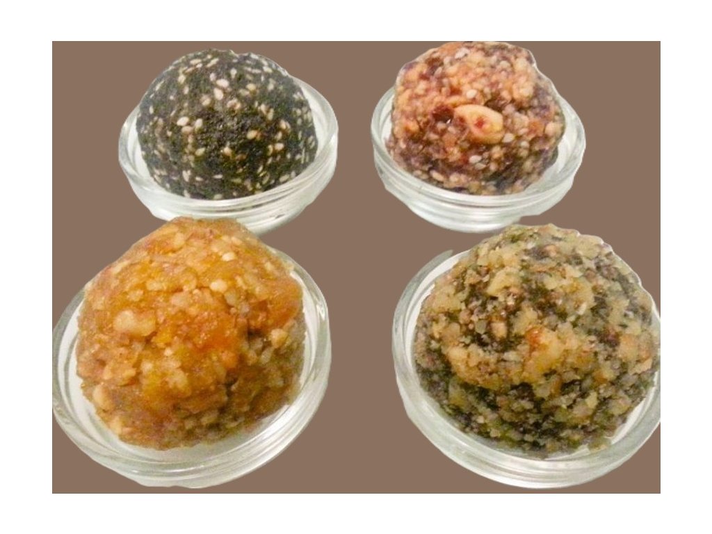 - Čistě ručně válené za syrova, směs ořechů, brusinky, meruňky, sezam, datle, mák - dle aktuálního výběru nebo přání (zdraví a dlouhověkost bez tepelných úprav, lepku, laktózy a éček). Minimální odběr 8 kusů.
